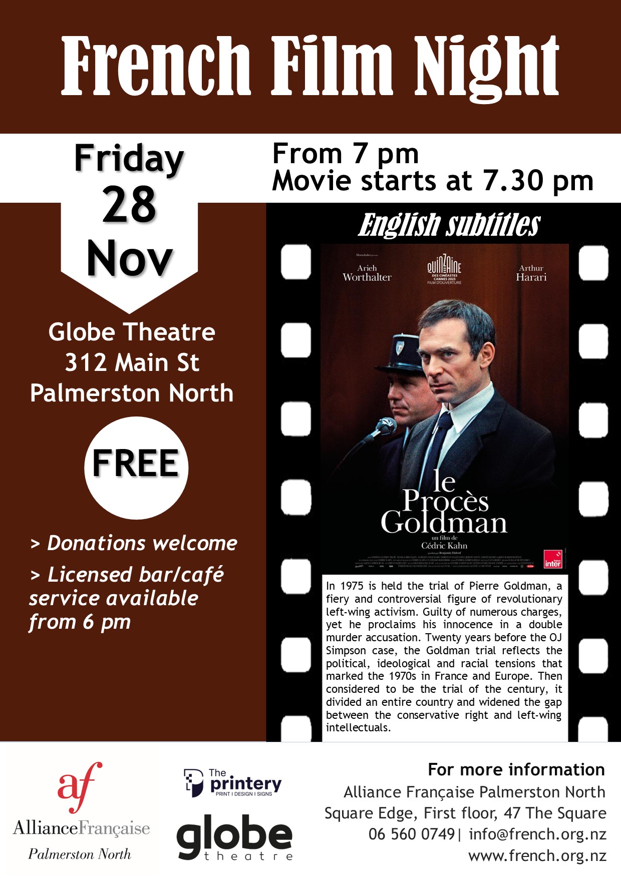 The film Le Procès Goldman (The Goldman Case) will be screened in French with English subtitles.