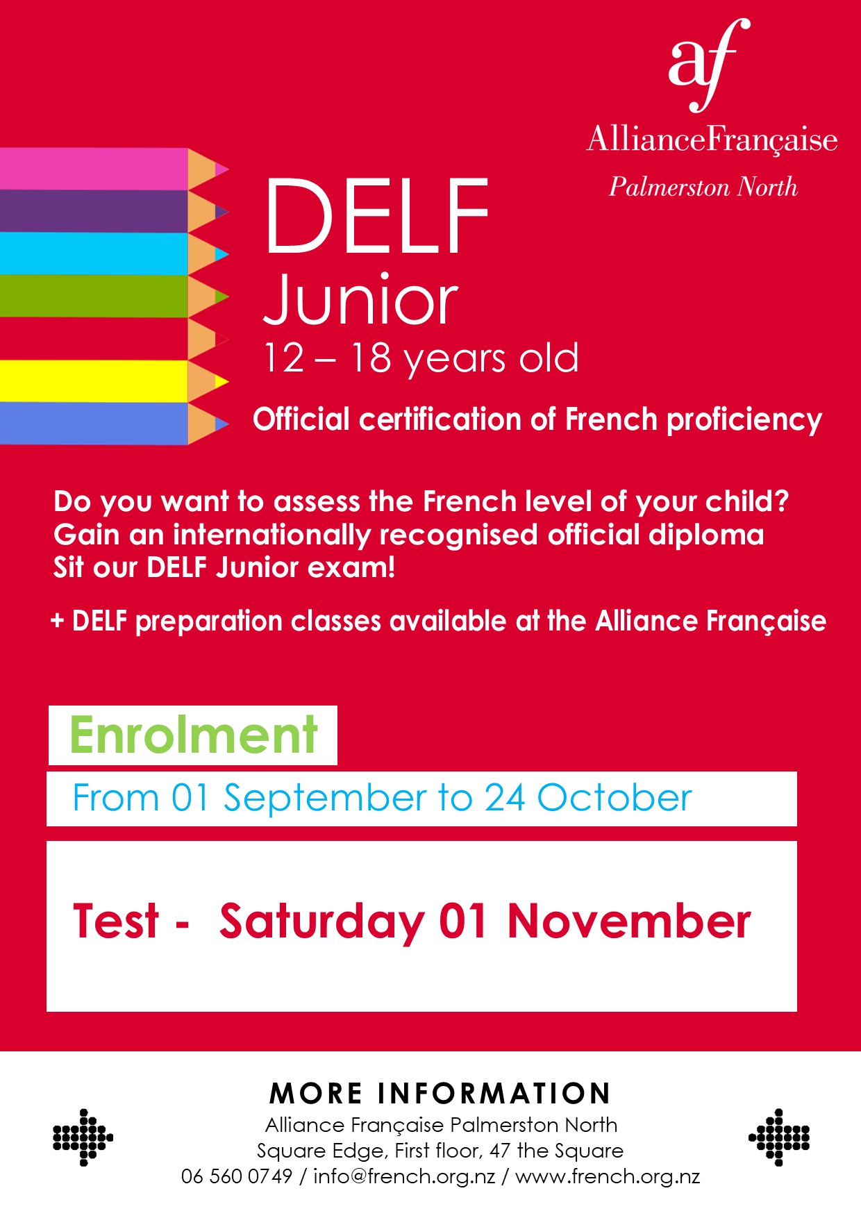 Enrolments will be open until 24 October. The DELF exam will be held on Saturday 1 November.