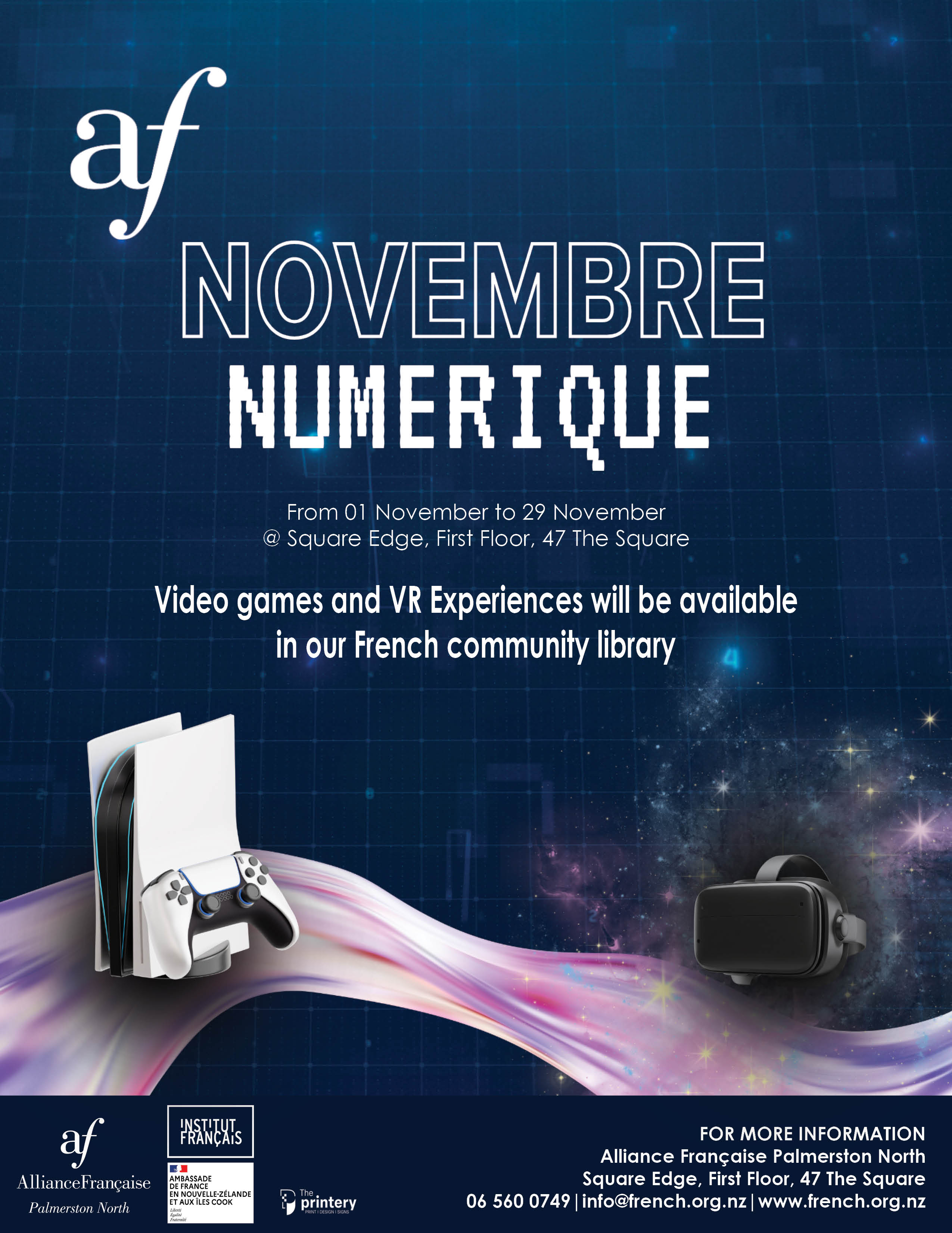 November is coming! Alliance Française Palmerston North is hosting video games and virtual reality experiences at the French community library.
